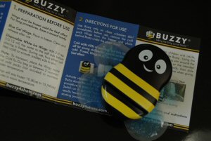 It says on product "Buzzy taking the sting out of shots" and it certainly does this.